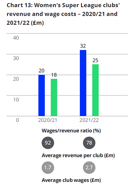 En dicho Informe no hay un estudio agregado de las principales ligas de fútbol femenino, pero sí lo hay de los ingresos de la competición inglesa: