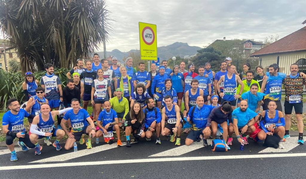 La entrada en San Sebastián es preciosa, como toda la ciudad, y según te acercas a la plaza de Zurriola, el Kursaal o la Alameda del Boulevard, la multitud se agolpa en los laterales y crea ese efecto «túnel humano del Tour de Francia» que tantos veteranos de la prueba me habían comentado. Fui a la carrera con el animado grupo del Club de Corredores, más de 100 personas que acudimos en dos autobuses y llenamos un albergue en Hondarribia (me sigue saliendo decir Fuenterrabía) durante todo el fin de semana. Con ganas, con buen humor, con la idea de hacer un «completo», consistente en paseo por San Sebastián, comida en una sidrería a base de buen txuletón, pintxos, cañas, txakolís, carrera, foto con El Pirata, baño en La Concha para los más osados, ducha rápida y vuelta para Madrid. Mucha juventud, un veterano de 78 años, gente de todos los niveles de marcas, algunos cracks con «marcones», otros cracks que se defienden, y siempre, siempre buen ambiente.