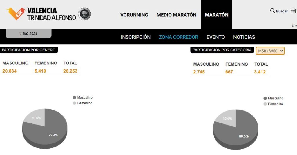 He echado un vistazo a las estadísticas del maratón de Valencia y veo que la participación femenina sigue creciendo año tras año, de lo cual me alegro, y sus marcas son bastante notables en muchos casos: