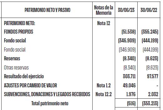En cuanto al Patrimonio Neto del eterno rival, la situación es diametralmente opuesta. Si no fuera un club de fútbol que, además, cuenta con un respaldo institucional potente tanto a nivel autonómico como nacional (controlan todos los estamentos y la mayor parte del «relato»), hace tiempo que habría quebrado o bajado de categoría como hicieron con otros como el Elche o el Reus, o se habría convertido en sociedad anónima deportiva, que seguramente es el camino que recorrerá más pronto que tarde.