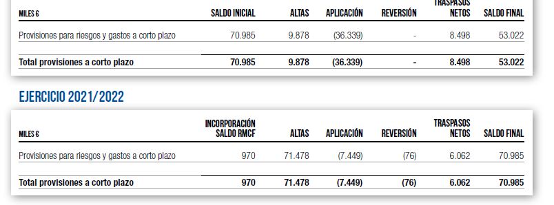 - El litigio sobre la permuta de terrenos de la que hablaré en el punto 6. El Real Madrid dio de baja esta provisión tras la resolución del TJUE en 2021, y volvió a dotarla al reabrirse el expediente.