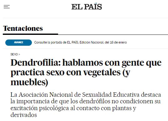 El terreno de las parafilias sexuales da mucho juego y Woody Allen describió algunas de ellas en Todo lo que usted siempre quiso saber sobre el sexo pero nunca se atrevió a preguntar. La fascinación por las grandes ubres, la excitación sexual exclusivamente en lugares públicos o el episodio que creo que todos recordamos con mayor claridad: el de Gene Wilder enamorado de su oveja. Aquello era un sketch del señor Allen, pero supongo que hay gente para todo. De siempre se ha hablado de ciertos pastores, granjeros y la relación con sus animales. Yo, sinceramente, ni lo imagino, ni quiero verlo (me consta que hay quien sube vídeos de estos a las redes). Algunos medios continúan con su labor «evangelizadora» iniciada hace años y periódicamente nos ofrecen algunas otras de estas extrañas aficiones: