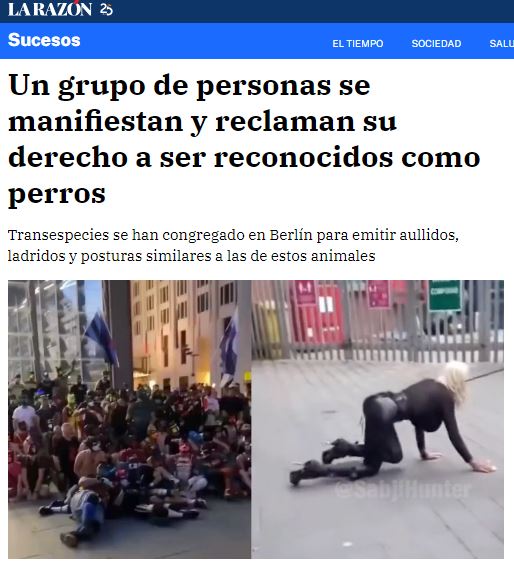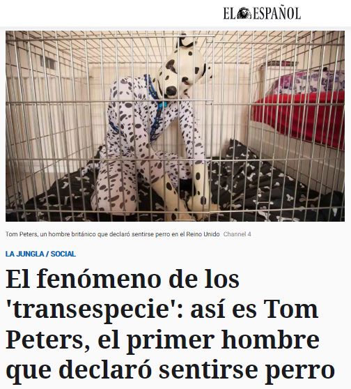 Que cada uno disfrute su vida, sus gustos y manías como quiera, siempre y cuando no interfiera en las de los demás. El problema es que a veces ocurre que la identidad de género o la autopercepción de uno mismo sí entra en conflicto con las leyes que nos hemos dado para organizar esta fauna que es el mundo. Y hoy voy a dejarlo en esas personas que se hacen llamar «transespecie»: fulanos que dicen no sentirse humanos, ni identificarse como tales. El caso del japonés que se gastó 14.600 euros en transformarse en un collie, el británico que dice querer vivir como un dálmata o el tipo de las orejas de silicona. Paren el mundo, que me apeo.