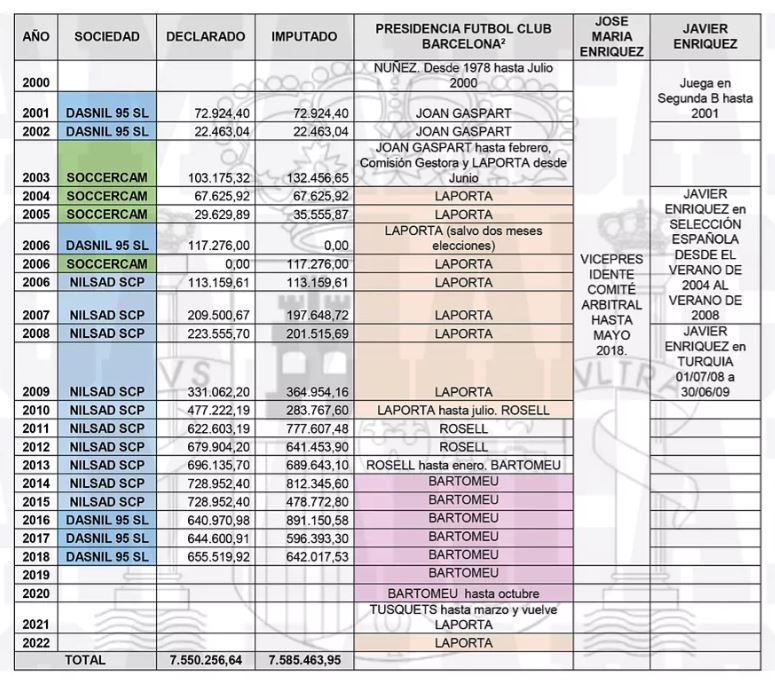 – Tenga en cuenta que en aquel momento -se justificó Míster Chof-, solo habíamos sabido que estaban acreditados unos pagos por parte del Fútbol Club Barcelona de 2016 a 2018.