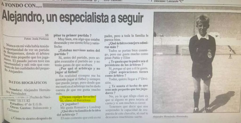 – Recuerde, no se puede cambiar de pasión. Y otro compañero de profesión, Rafa Guerrero, camino a un partido en Huelva, le vio a usted celebrar un gol del Barça. (HH emitió un gesto de fastidio y movió la cabeza hacia ambos lados) Pero no le culpo por eso, entiéndanos. Culpo a los que compraron el sistema para asignar los partidos más importantes de cada temporada a un culé que no disimula con el silbato.
