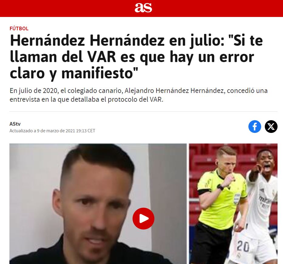 – Cuando llevas 12 temporadas en Primera División si nos dedicamos a recordar los errores del pasado, también estaría bien recordar los aciertos. Pero si hablamos de aquel error, ya lo expliqué en su momento, no me escondo. Acudí al plató de Movistar y lo dije, cuando terminó el partido y vi la imagen, evidentemente te quedas tocadísimo. Sería mentir si dijera lo contrario. Al final está en juego tu prestigio profesional, el no haber podido ver una jugada tan groseramente clara te hace un daño mediático y futbolístico importante.