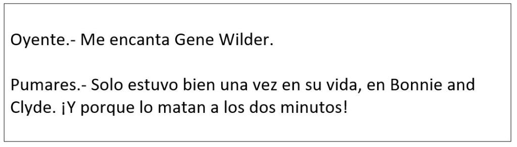 Carlos Pumares también nos enseñó a valorar la importancia de la voz original de los actores. A nosotros, que solo conocíamos las versiones dobladas. «Usted no puede saber si es buen o mal actor si no lo ha escuchado nunca en versión original». No odiaba el doblaje tanto como el Cinemascope u otros formatos que alteraban la imagen, pero nos incitó a disfrutar las películas en versión original. Del mismo modo que nos animaba a ver el cine en las salas, porque en el vídeo (y hablo de nuestros VHS de los ochenta y principios de los noventa) no se veía nada.