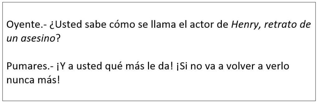 En un porcentaje muy alto, daba el título y describía parte del argumento posterior para que el oyente confirmara si era o no lo que andaba buscando. En los tiempos pre-Internet, Carlos Pumares era el buscador de los oyentes. Aquel tipo aparentemente cascarrabias me hacía pensar que yo quería saber algún día de esto. No contaba con alcanzar su erudición, aquel conocimiento enciclopédico, pero sí, al menos, con ser capaz de recordar, comparar, interpretar escenas, memorizar secuencias… ¡saber! Me hizo querer saber de cine.