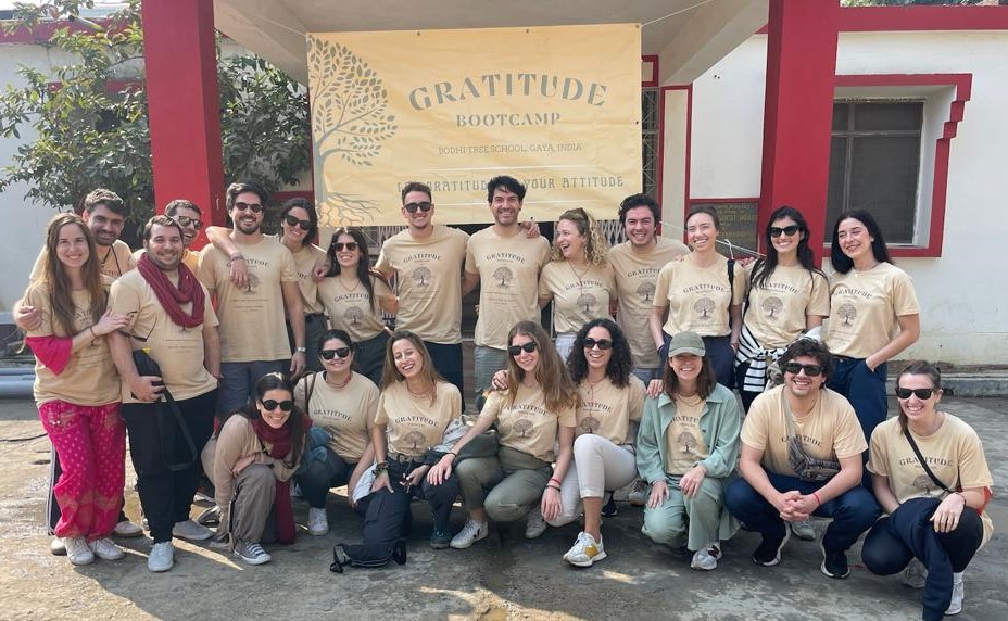 EQUIPO GRATITUDE BOOTCAMP.- El Gratitude Bootcamp es una experiencia inmersiva de una semana donde participantes de España viajan a Bodhgaya, al noreste de la India, para vivir un viaje de la razón al corazón, conectar con uno mismo, tomar perspectiva y, sobre todo, aprender a vivir desde la gratitud. El coste de esta experiencia va íntegramente donado a la escuela Bodhi Tree School Foundation, una escuela que da educación de calidad a más de 800 niños de las zonas más pobres de la India. Completando cuatro Gratitude Bootcamps al año, lograremos soportar los costes básicos del colegio.