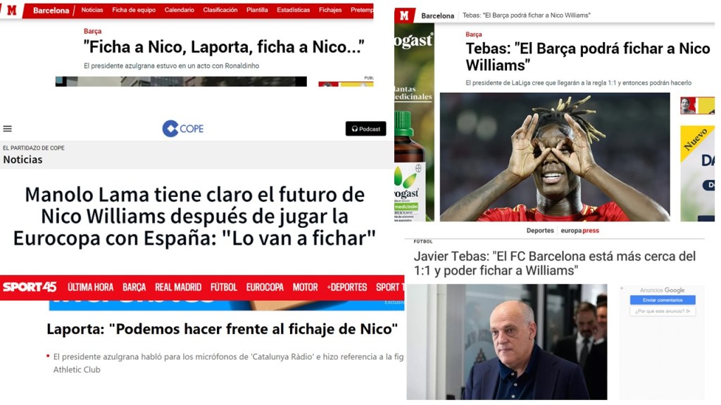 Prensa: no ha sido una sorpresa, han sido, de lejos, lo peor. El autoproclamado «mejor periodismo deportivo del mundo» es un espanto, no hay por dónde cogerlo. Se han pasado estas últimas cuatro semanas preguntando a Nico Williams si le gustaría jugar en el Barça, o escribiendo sobre lo que sería ese dúo en el club azulgrana, hasta el punto de incomodar al chaval. La connivencia de la prensa con la Federación y LaLiga se ha visto claramente cuando el presidente del Athletic de Bilbao, Jon Uriarte, criticó abiertamente la presión a la que se ha visto sometido el chaval y la nula protección de la Federación. Pues resulta que han sido los periodistas habituales del «régimen» los que se han sentido aludidos y han salido a defender a la Federación y criticar al Athletic de Bilbao.