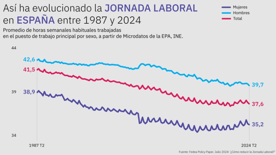 La jornada de trabajo lleva establecida en las 40 horas semanales desde hace algo más de cuatro décadas, concretamente, desde el 30 de julio de 1983, cuando entró en vigor junto con el derecho de los trabajadores a 30 días de vacaciones remuneradas. Hace un siglo, la jornada de trabajo superaba las 3.000 horas anuales, con solo un día de descanso a la semana, mientras que en la actualidad los convenios tienen una media de 1.713 horas. Esta drástica reducción se logró por el incremento de la productividad y la incorporación de innovaciones tecnológicas a los procesos de fabricación, la automatización de procesos o las mejoras en la distribución. El debate sobre la reducción de la jornada actual se puede plantear en un escenario en el que haya una mejora de la productividad, o bien, en el que dicha medida vaya a suponer un incremento del empleo, un mejor reparto de las tareas. De lo contrario, solo va a suponer un incremento de los costes laborales, una reducción de la competitividad de las empresas y con ello, un impacto negativo para las más pequeñas.