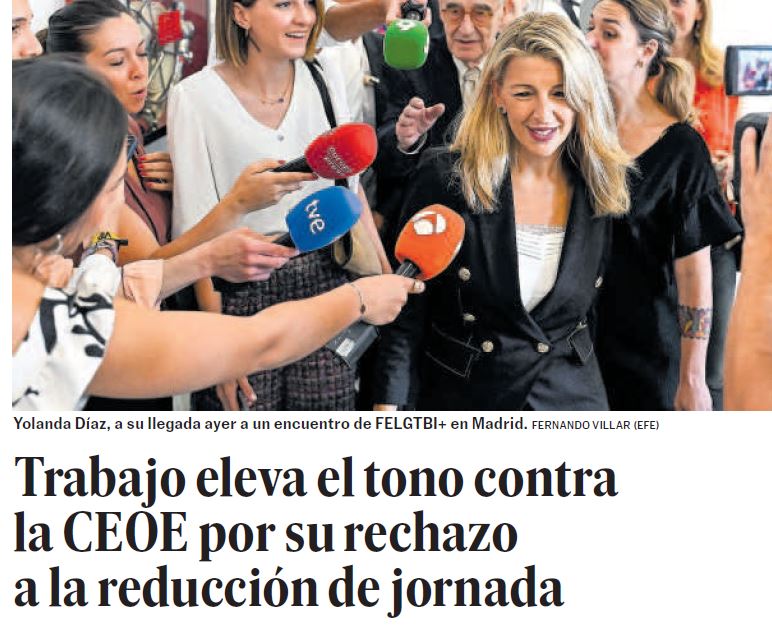 La Federación Nacional de Asociaciones de Trabajadores Autónomos (ATA) manifestó su rechazo a la reducción de la jornada tal como se ha planteado por parte del ministerio. Su presidente, Lorenzo Amor, justificó la postura contraria porque va “en contra de la negociación colectiva y de la pequeña empresa”. Señaló algo que ya he salido varias veces en este mismo post: que la medida “no afecta a grandes compañías, ni a determinados sectores donde ya tienen de media algunos convenios que están por debajo de la propuesta que se está haciendo”. Sí ataca de lleno al autónomo y a la pyme.