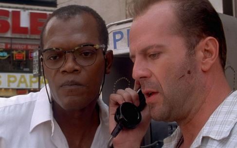 La jungla de cristal: la venganza: la primera se tituló en España La jungla de cristal en lugar del Die hard original, porque sucedía en un edificio en el que se reventaban todos los cristales de las ventanas y sonaba a La jungla de asfalto, así que tocaba seguir con esa «jungla» que no se aprecia ni de lejos en las siguientes entregas, pero, ¿acaso importaba? La mejor sigue siendo la primera (al menos para mí), y a continuación en mis preferencias viene esta tercera. ¿La razón? Los villanos: Alan Rickman y Jeremy Irons. Están varios cuerpos por encima de los que interpretan los personajes de Franco Nero y William Sadler en la segunda. Y para que una buena trama de acción funcione, es imprescindible contar con un villano de altura. Si, además, pones a Samuel L. Jackson al lado de John McClane, el entretenimiento está asegurado.