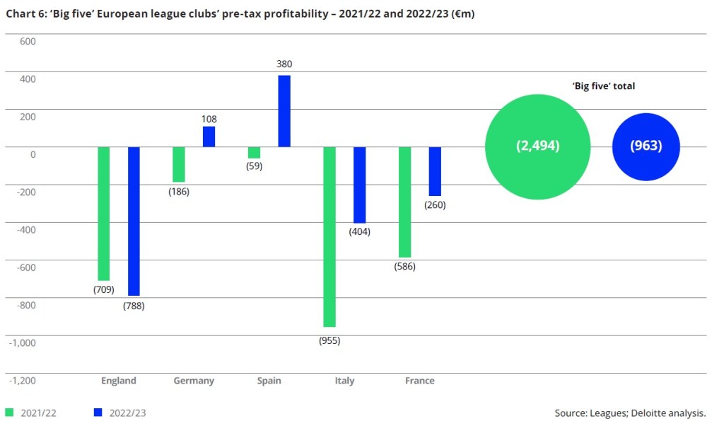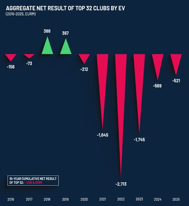 - Pese a ello, el resultado agregado de los 32 clubes sigue siendo negativo.