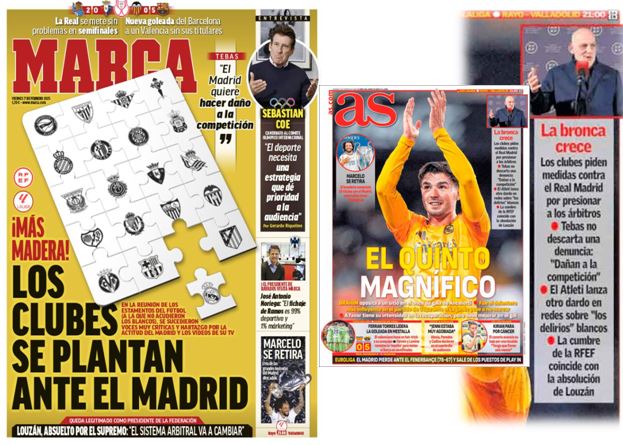 De hecho, en todo este tiempo, ni sus directivos, ni su entrenador han hecho una sola declaración sobre el caso Negreira. Sin embargo, Miguel Ángel Gil Marín contó con dos portadas en exclusiva (La Central Lechera, la Caverna Madridista, y todas esas falacias) para despacharse a gusto por una amarilla no sancionada en un Real Madrid-Atleti.