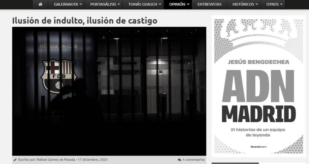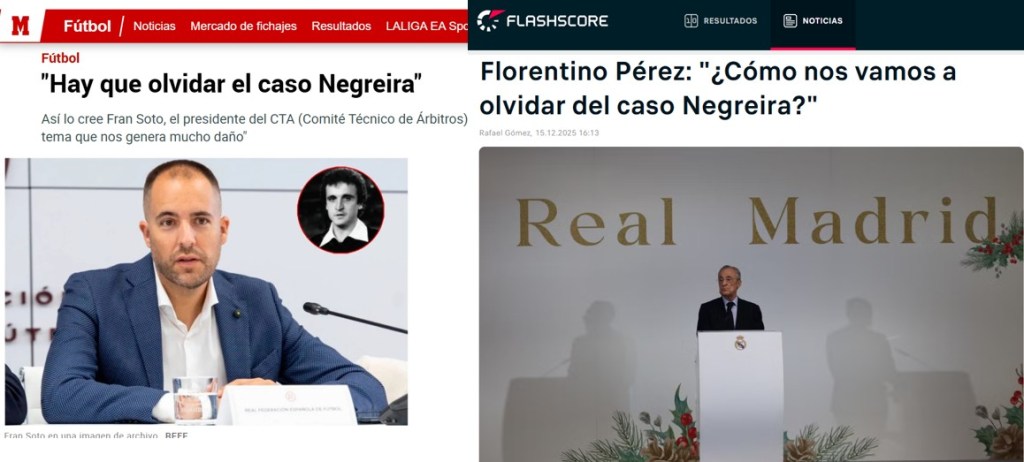 Tengo mi anécdota particular al respecto. En noviembre presenté mi Anatomía de un Negreirato en Barcelona, en la peña madridista de Belvitge, conjuntamente con la de Hospitalet, en un evento presentado por Javi «Kollins» y el gran Tomás Guasch, periodista de larga trayectoria y uno de los pocos que quedan que llama a las cosas por su nombre. Cuando llegó a la radio ese mismo día, a Tiempo de juego de la Cope, apenas un par de horas después de la presentación del libro, informó en directo del acto, del título del libro y de ese «juicio que no veremos» que lleva por subtítulo. Primero se lo tomaron a cachondeo y apenas unos segundos después se hizo un breve silencio y pasaron a otro tema. Les faltó decir «Tomás, que no vamos a hablar de Negreira, que no nos dejan». He recogido el corte de la radio y lo he unido a las imágenes en este breve vídeo: