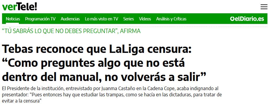 Todo el que siga habitualmente este blog, sabrá que le he dedicado mucho tiempo a este escándalo desde que estalló (me hizo unir todas las piezas del puzzle de corrupción que sospechaba desde hacía tiempo, dio sentido a varios artículos previos) y me dio hasta para un libro entero sobre el asunto, de ahí que me cabree el nulo seguimiento de la prensa. Los que no se han dedicado a ignorarlo han sido peores: han desinformado quién sabe con qué intereses. Si de manera altruista (o antimadridista), o bienpor pertenecer a los medios generosamente subvencionados por Javier Tebas. LaLiga de Javier Tebas invierte mucho en medios de comunicación, entre 30 y 36 millones de euros anuales, ya roza los 40, algo que no voy a criticar pues entiendo que esa inversión es totalmente necesaria para comercializar y difundir su producto, aunque el modo de hacerlo sea manifiestamente mejorable. Pero, como ocurre con otros líderes caciquiles, y hay numerosos ejemplos en la política actual, el que pone la pasta trata de controlar lo que publican los medios que financia.