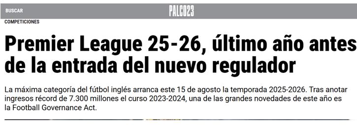 La mayoría de los clubes ingleses pertenecen a fondos de inversión extranjeros que han apostado fuerte por el fútbol y en especial por la Premier. Ingresos recurrentes de más de 800 millones de euros, apoyados en los fuertes ingresos por derechos de televisión y la gestión de la marca. Se aprecian diferencias entre el Liverpool (perteneciente al fondo americano Fenway Sports Group, propietarios de los Boston Red Sox) y el Manchester City (del fondo Abu Dhabi United Group, del jeque Mansour bin Zayed). El Manchester City tiene unos ingresos por estadio y partidos muy inferiores a los del resto de equipos de la Premier (es un club con menos tradición, pues durante cuatro décadas estuvo lejos de la élite), y cubre esa carencia con los patrocinios ¿fake?, varios de los cuales dieron lugar a las investigaciones de la Premier y a las posibles 130 sanciones (La Premier se pone seria) que ahora están medio aparcadas. Otro dato relevante es que un equipo como el Liverpool, con esta cifra de ingresos, pueda permitirse invertir 500 millones el pasado verano en fichajes. O el City, capaz de gastarse más de 200 millones en los mercados de invierno en jugadores que luego apenas cuentan con minutos.