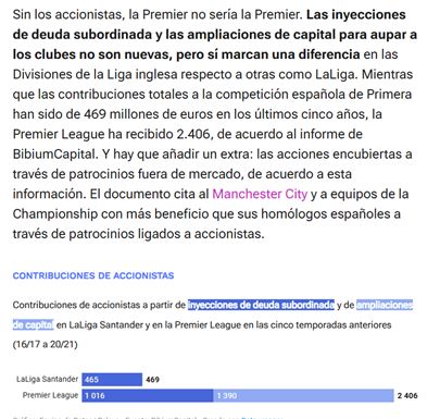 Si la capacidad de generar ingresos de los grandes clubes de Europa no está tan lejos de los de la Premier, PSG aparte, ¿dónde está la principal diferencia? Pues en las aportaciones de los dueños, bien sea por aportaciones de capital o por deuda de los accionistas, en su mayoría fondos de inversión de capital extranjero (saudíes, americanos, cataríes, emiratíes…). En este artículo se explica bien: