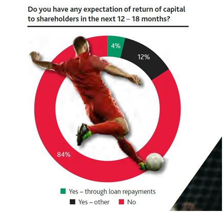 Pese a las pérdidas, hay más apetito inversor que nunca por parte de fondos extranjeros por invertir en el negocio de la Premier. La respuesta de los CFO acerca de si prevén devolver pasta a sus accionistas es demoledora (y eso que no contempla la opción «ni de coña»):