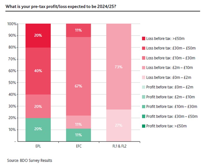 A finales de enero se publicó un estudio de la auditora norteamericana BDO realizado a partir de una serie de encuestas a los directores financieros (CFO) de los clubes ingleses. El estudio resulta interesante por las diferentes conclusiones que deja acerca de la situación del fútbol inglés: las pérdidas, las elevadas cifras de ingresos, la percepción negativa de los CFO acerca de la evolución financiera de los clubes y la relación con los accionistas.