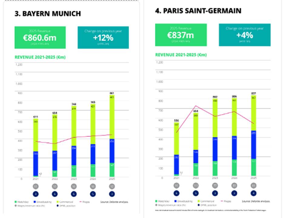 El rango de los ocho primeros clubes se sitúa entre los 400 y los 515 millones de euros, algo más para el PSG. Sin embargo, este análisis resulta incompleto por dos razones: