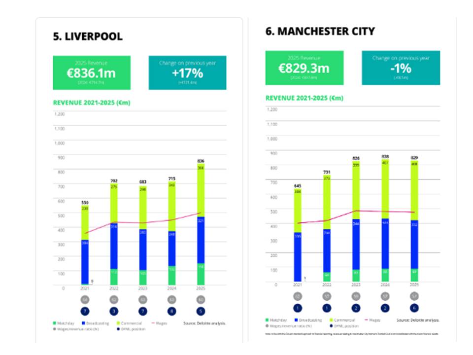 La mayoría de los clubes ingleses pertenecen a fondos de inversión extranjeros que han apostado fuerte por el fútbol y en especial por la Premier. Ingresos recurrentes de más de 800 millones de euros, apoyados en los fuertes ingresos por derechos de televisión y la gestión de la marca. Se aprecian diferencias entre el Liverpool (perteneciente al fondo americano Fenway Sports Group, propietarios de los Boston Red Sox) y el Manchester City (del fondo Abu Dhabi United Group, del jeque Mansour bin Zayed). El Manchester City tiene unos ingresos por estadio y partidos muy inferiores a los del resto de equipos de la Premier (es un club con menos tradición, pues durante cuatro décadas estuvo lejos de la élite), y cubre esa carencia con los patrocinios ¿fake?, varios de los cuales dieron lugar a las investigaciones de la Premier y a las posibles 130 sanciones (La Premier se pone seria) que ahora están medio aparcadas. Otro dato relevante es que un equipo como el Liverpool, con esta cifra de ingresos, pueda permitirse invertir 500 millones el pasado verano en fichajes. O el City, capaz de gastarse más de 200 millones en los mercados de invierno en jugadores que luego apenas cuentan con minutos.