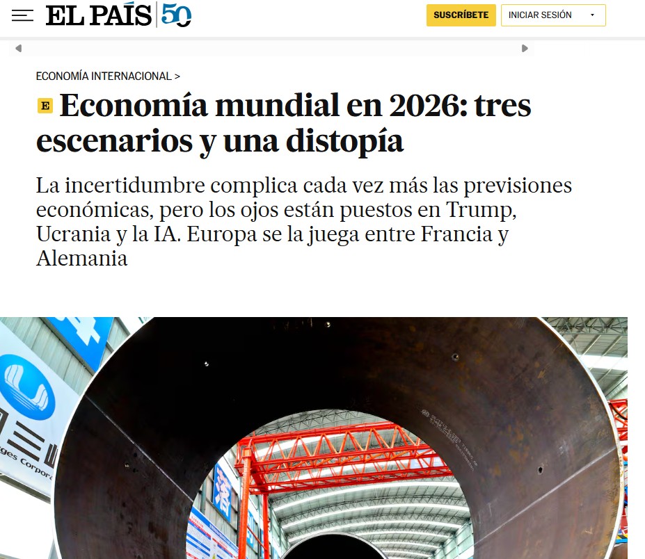 Como dice el viejo chiste referido a los economistas, los de mi gremio predijeron nueve de las últimas cinco recesiones. Vamos, que el mono tocando botones al azar en Wall Street tenía las mismas posibilidades de acertar que el más experto de los gurús. No por ello dejo de leer cada año con atención las predicciones de los principales medios económicos, no solo por la parte financiera, sino también por lo referido a la geopolítica, que al final termina influyendo en nuestros bolsillos. Mi opinión particular respecto a lo que espero para 2026 (en el sentido de expectativa, no de esperanza) no es relevante, pero, aun así, algún comentario se me escapará, no puedo evitarlo.