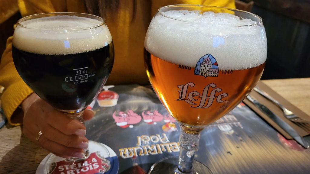 gofres con chocolate. Y, por supuesto, las famosísimas cervezas belgas, con cartas de 300 tipos distintos en casi todos los lugares que visitamos. Y, claro, puesto que uno va “a lo que salga”, había que probarlo todo. Reconozco que lo mejor fueron las cervezas, la Leffe en mi caso, la Carolus no-sé-qué para mi mujer.
