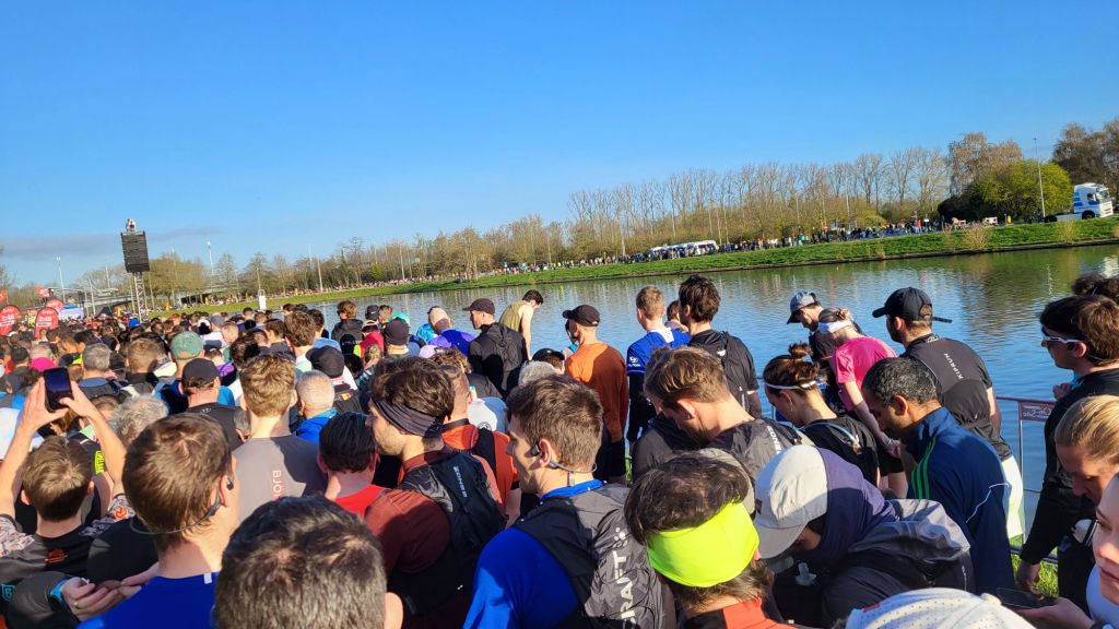 A partir del km.15 la carrera te lleva por el sur de la ciudad, más allá algún parque, y más allá aún, los campos, las granjas y las zonas cenagosas por donde pasan los canales, lodazales en algún caso. No sé si es un tema cultural, pero fue una carrera silenciosa, sin el bullicio de muchos maratones que recorren los cascos urbanos de las ciudades. Los propios participantes andábamos concentrados en nuestros respectivos ritmos, solo alterados por alguna banda dispuesta por la organización (a saber, un DJ marchoso, una banda musical de instituto, un grupo de percusionistas perrofláuticos y ¿un