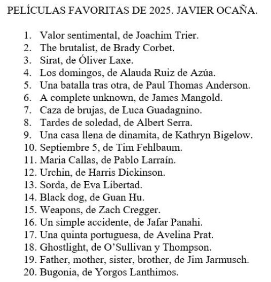 Esta noche se entregan los Globos de Oro. Sirat es un truño gigantesco, creo que mi opinión ha quedado clara, pero es posible que pille algo. Sinners y Una batalla tras otra seguro que también cosechan premios. No están mal, de verdad, pero, ¿no ha habido nada mejor este año?