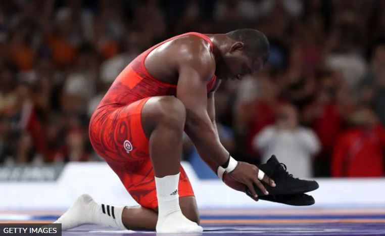 Diyora Keldiyorova, 50 kilos de peso, una uzbeka que logra llevarse el oro en un país que llevaba casi exclusivamente luchadores y boxeadores hombres a los Juegos.Raven Saunders, plata en peso en 2020 y «undécime» en París. Realmente se identifica como no binaria y queer, pero compite como mujer.
