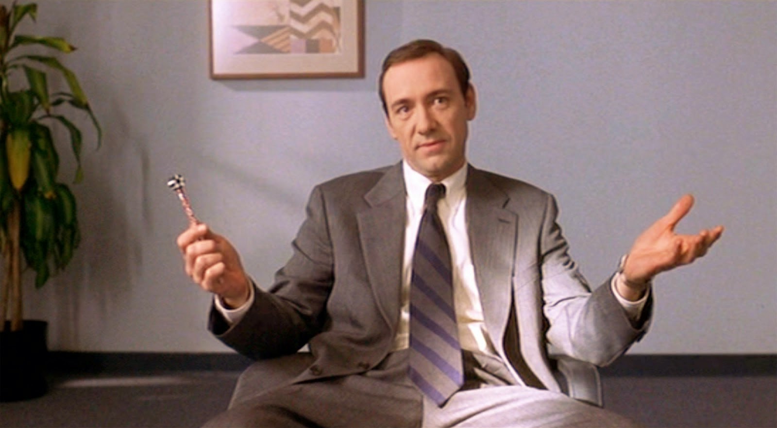 Jefe tóxico, nocivo sin duda, pero hay otro detalle cachondo en el vídeo de Glengarry Glen Ross, ¿os habéis fijado quién es el segundo de Baldwin? Esa ladilla rastrera que parece asentir a cada insulto de Baldwin es Kevin Spacey, ¡joder, Lester Burnham! ¿Qué pasó con ese «tipo corriente sin nada que perder»? ¡Al final se salió del curro para encontrar otro en el que ganara más sin importarle tener que putear a sus compañeros!