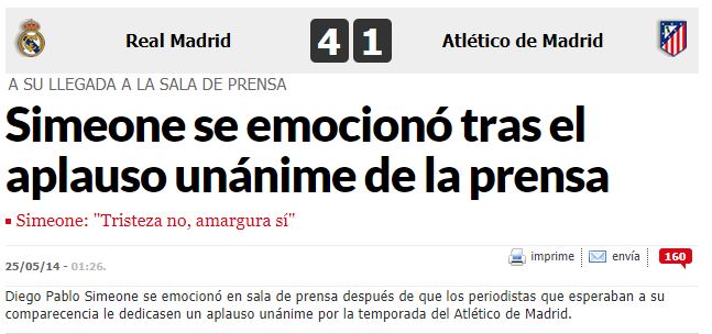 El Cholo tiene tantos «amigos» entre los periodistas que cuando entró en la sala de prensa en Lisboa tras la final de 2014 comenzaron todos a aplaudirle. ¿Por qué? No es solo que olvidaran el lamentable juego y el bochornoso espectáculo de fingimiento y pérdida de tiempo desplegado durante más de una hora, sino que aplaudieron también al tipo que en los últimos minutos de partido saltó al campo como el macarra que siempre fue para agredir a un chaval de 21 años entonces, Raphael Varane. Lo que siempre se critica al entrenador del Real Madrid, sea quien sea, se convierte en aplausos cuando del Cholo se trata.