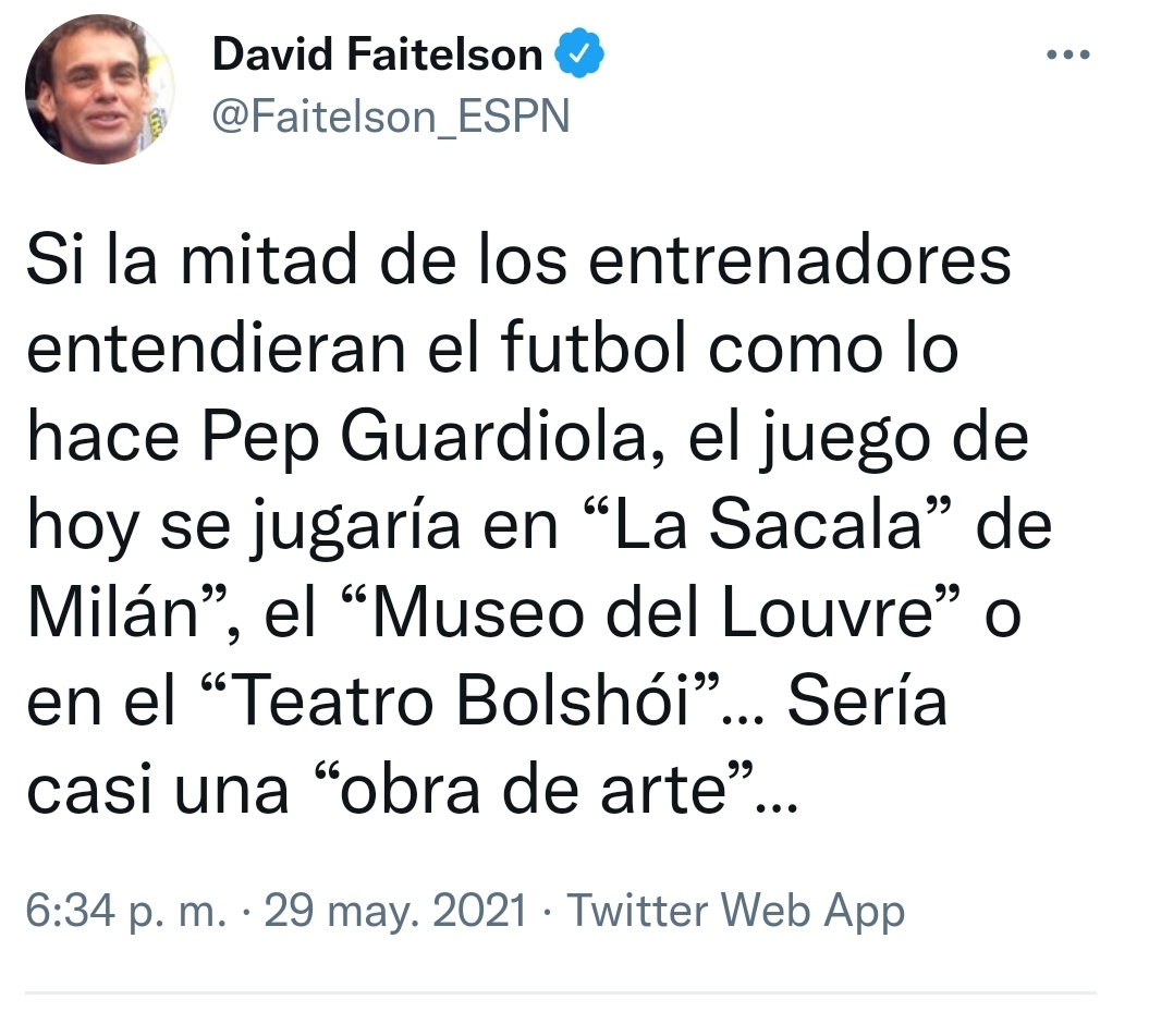 Otro ejemplo de prensa babosa a su alrededor es Pep Guardiola, que puede gastar más de mil millones de euros en fichajes y no conseguir nada en Europa. Lo sé, habrá quien recuerde sus dos Champions con el Barça (2009 y 2011), pero con ese equipazo se consiguieron también antes (Rijkaard, 2006) y después (Luis Enrique, 2015). El Bayern de Munich logró la Champions antes de Pep (2013) y después de Pep (2020), pero no con Pep, pese a todos los fichajes realizados. La semana pasada se le aplaudió la genialidad de salir a jugar la final de Champions sin medio centro defensivo, lo mismo que se le aplaude hacer que un lateral vaya hacia el centro del campo o que juegue sin delantero centro.