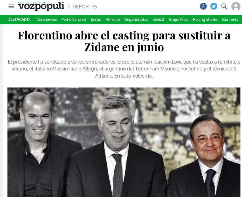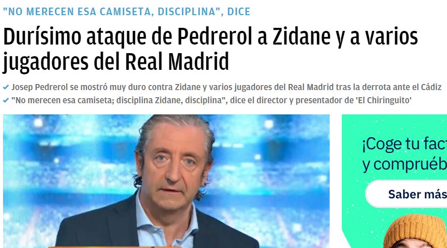 No deja de ser curioso el doble rasero de la prensa para alabar a Simeone, Guardiola, Klopp, Tuchel o incluso Pochettino mientras se critica todo lo que hace Zidane, cuyo palmarés habla por sí solo. ¿Desde cuándo está la prensa detrás de la cabeza de Zidane? En realidad no ha habido entrenador del Madrid que haya escapado de los ataques de la prensa: Del Bosque era un gestor de grupo sin conocimientos tácticos (dos Champions, un Mundial y una Eurocopa, entre otros títulos), Lopetegui por cómo se produjo, Benítez porque no era el perfil, Solari porque pasaba por allí y no daba la talla, Mourinho era un tipo arisco y maleducado que jugaba al contraataque (100 puntos y 121 goles en una sola temporada),… y Zidane es un alineador con flor. Con todo lo que ha tenido que aguantar este año con las lesiones, sin fichajes y con las salidas de jugadores en mitad de la temporada. Tras el descalabro frente al Alcoyano se pidió su cabeza, ya se hablaba de que no tenía margen o la situación era límite: