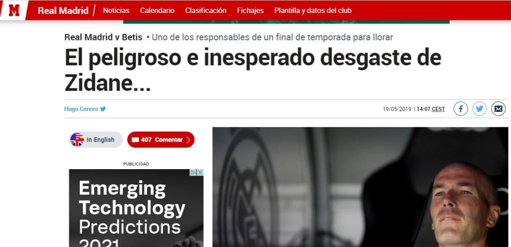 Zidane había vuelto al equipo unos meses antes para tratar de enderezar el desaguisado que habían dejado Lopetegui y Solari, pero tras una mala racha de resultados y apenas tres meses en el cargo era cuestionado de nuevo. Mayo de 2019: